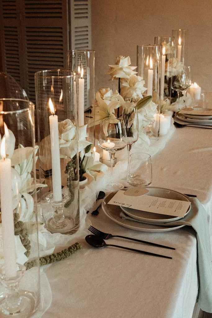 Chaque pièce est envisagée comme un véritable élément du décor — un point focal qui dialogue avec la décoration florale, la lumière et l’atmosphère du lieu.